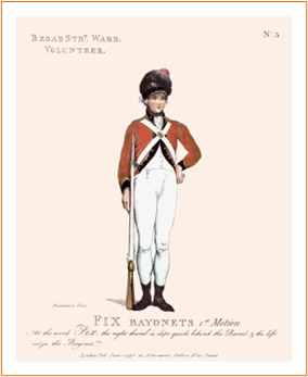 My beautiful assistant, Elisabeth, will now show you, in boxing ring rounds style (though perhaps without the bare mid-riff), Broad Street’s militia from 1798 as an example. This leads me to point out that Candlewick’s claim to be the oldest, founded 1670, reconstituted 1739, while accurate, is probably matched by almost everyone here is some form of older, quite organised and formal, ward governance.